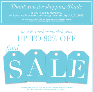 I know it’s always sad when a store goes out of business, but Shade Clothing is closing soon and is offering up to 80% everything! This is valid until July 31st as they are closing that day. They offer free shipping with no minimum so you can score some great deals! HURRY they are selling fast!