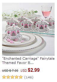 I am in love with this first idea. They are enchanted carriage fairytale themed favor boxes that look just like out of Cinderella 😉 If you have a pink theme wedding these are perfect.