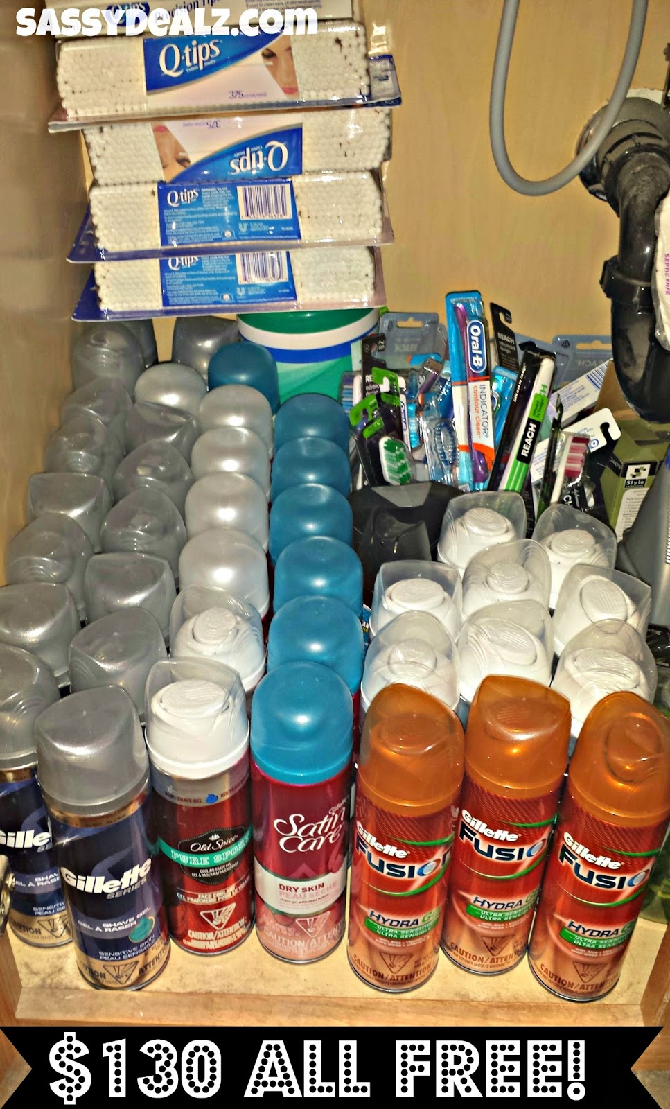Ahh, this is my favorite spot in my bathroom. Right under my husbands side of the sink LOL! I got all these Gillette shaving creams for free as well as over 40 toothbrushes and flosses! We definitely won’t run out anytime soon thank goodness! This required printing tons of coupons, cutting, and doing multiple transactions hehe!