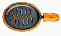 - Fajita set for your grill, includes pre-seasoned cast iron fajita skillet, wooden serving tray and handle holder