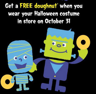 You’re Invited to Our Doughnut Costume Party on Halloween (10/31)!!! Wear your costume to any of our participating US or Canadian Krispy Kreme shops near you.