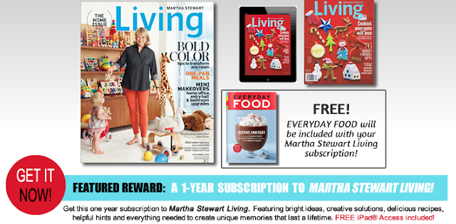 Hurry over HERE to score a free 1 year subscription to Martha Stewart living and as a bonus you will get a subscription to Everyday Food magazine too! Just fill out your information and take a survey—super simple! You will never receive a bill.